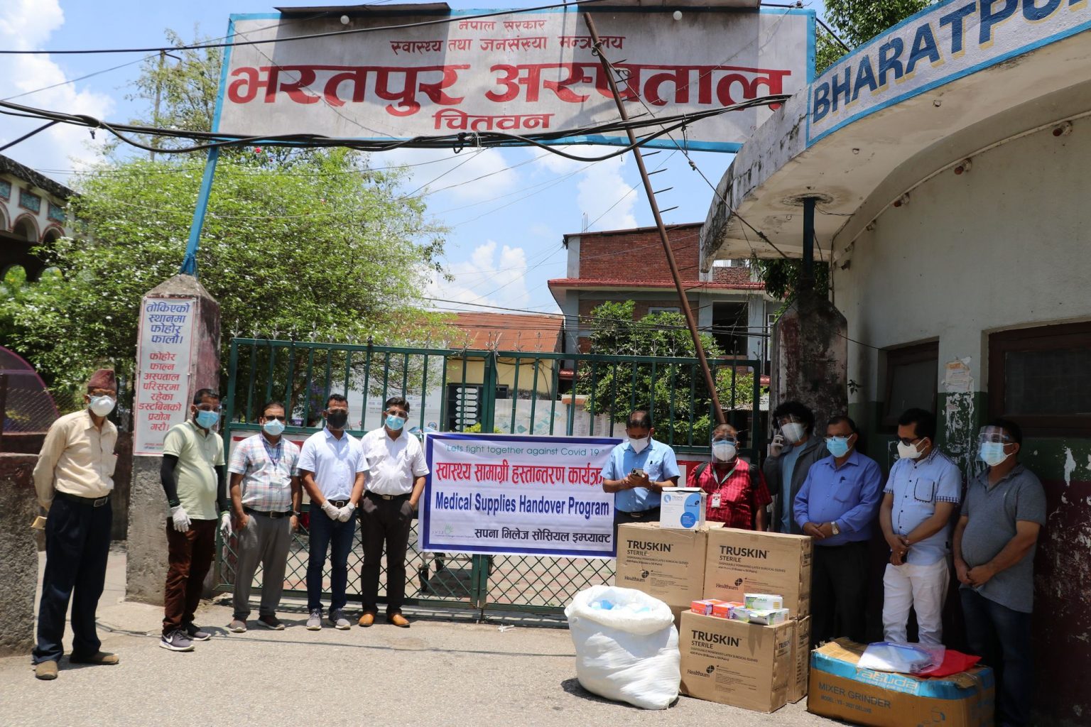 चितवन : चितवनको पर्यटकीय नगरी सौराहामा रहको सपना भिलेज सोसल ईम्प्याक्टले कारोना कहर नियन्त्रणमा सहयोग अभियान जारी राखेको छ । कोभिड दोस्रो लहरसँगै लगातार सहयोगमा जुट्दै आएको सपना भिलेजले आज फेरि भरतपुर अस्पतालमा विभिन्न स्वास्थ्य समाग्री सहयोग गरेको छ ।