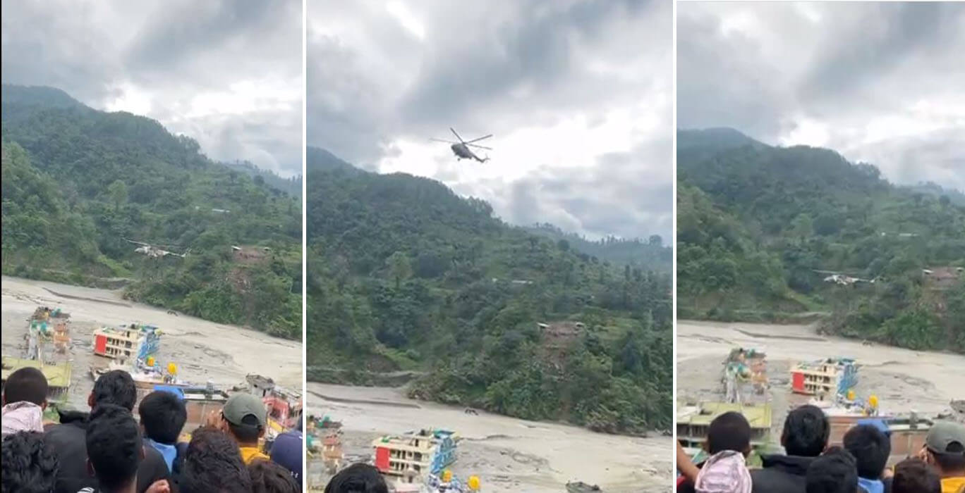 काठमाडौँ। मंगलबार साँझदेखि बाढीले वितण्डा मच्चाएको मेलम्ची क्षेत्रमा सयौंको संख्यामा तालिमप्राप्त उद्धार टोलीसहित नेपाली सेनाको हेलिकोप्टर पुगेको छ । राति भएकाले हिजो उद्दार टोली र हेलिकप्टर पठाउन नसकिएको गृहमन्त्रालयले बताएको थियो ।