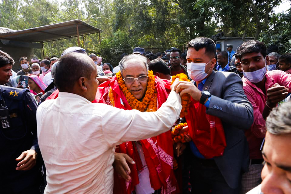 प्रचण्डको निजी सचिवालयका अनुसार रौतहटको गरुढा नगरपालिको महोम्मदपुरमा उनीलाई ग्रिनकार्पेट बिच्छ्याएर स्वागत गरिएको हो।