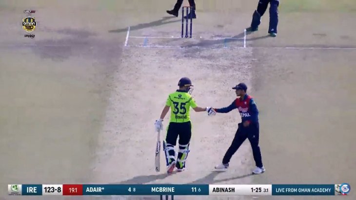 १९ औँ ओभरको दोस्रो बलमा यो दृश्य देखिएको थियो, दायाँ हाते मिडियम पेसर कमलसिंह ऐरीले बलिङ गरिहेका थिए । आयरल्यान्डका ब्याट्सम्यान मार्क ऐदरले प्रहार गरेको बल धेरै पर गएन । त्यसपछि उनी रन लिनका लागि दौडेका थिए, त्यही बेला ननस्ट्राइकरमा रहेका एन्डी म्याकब्राइन कमलसिंह ऐरीसँग ठोक्किँदा लड्न पुगेका थिए । त्यसपछि म्यामब्राइन क्रिजसम्म पुग्न सकेनन् । तर विकेटकिपर आसिफ शेखले उनलाई आउट नगर्ने निर्णय गरेका थिए ।