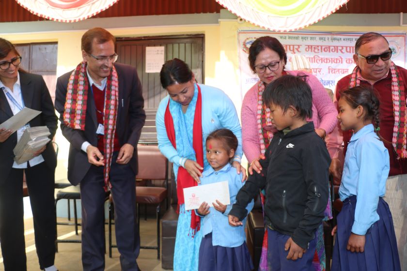 महानगर प्रमुख रेनु दाहाल उपप्रमुख पार्वती शाह ठकुरीको हातबाट ११ बिद्यालयका २४० बिद्यार्थीलाई एकै दिन सो रकम हात हातमा हस्तान्तरण गरिएको हो ।लोपउन्मुख तथा अति सिमान्तकृत समुदायका बालबालिकाको शैक्षिक विकासमा सहजता होस भन्ने उदेश्यका साथ भरतपुर महानगरले नेपालमानै पहिलो पटक यति धेरै रकम नगद छात्रबृत्ति दिएको छ ।
