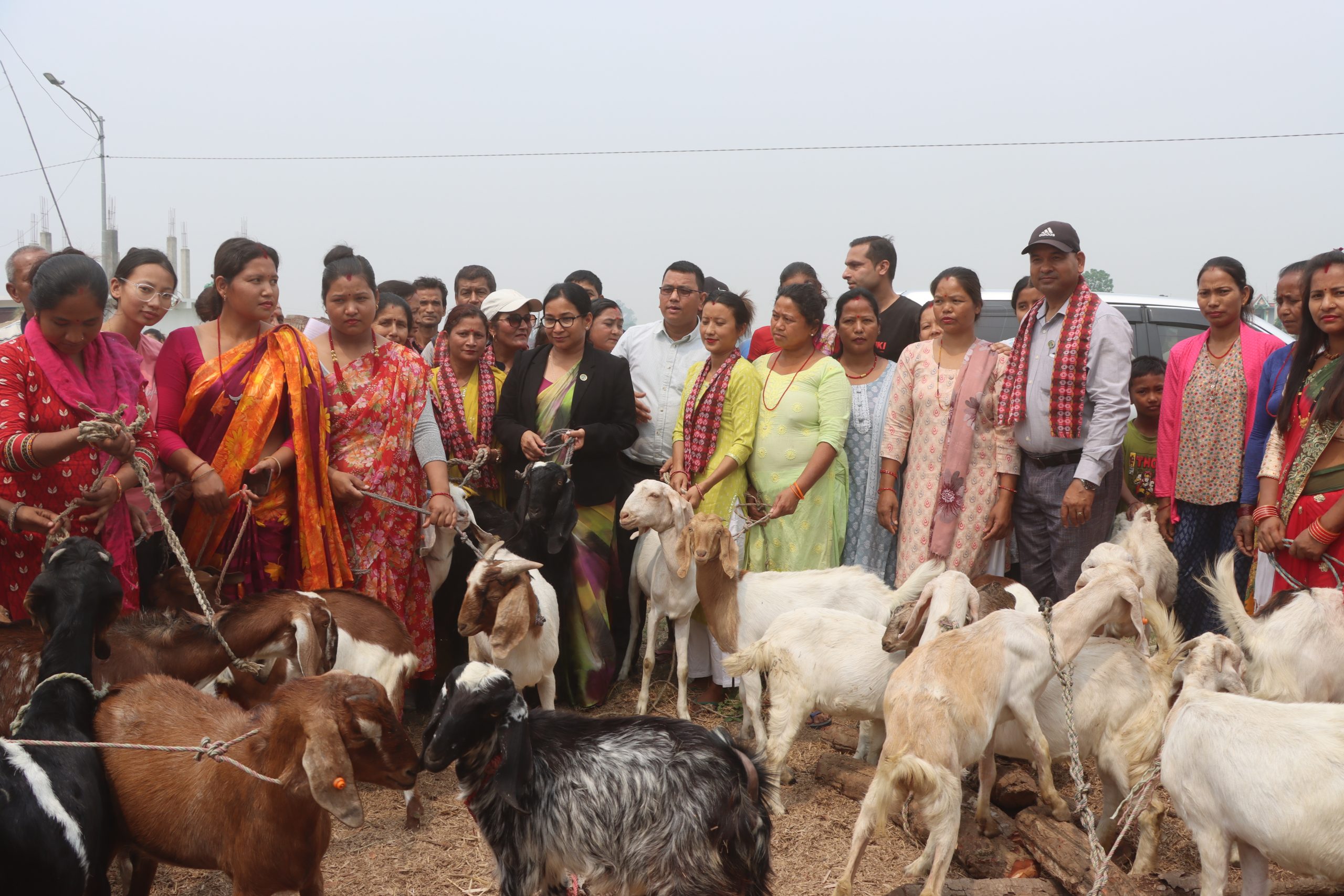 भरतपुर महानगरपालिकाका प्रमुख रेनु दाहालले बाख्रा वितरण गर्दै निम्न आयस्तर भएका नागरिकको जीवनस्तर सुधार्न युवा लक्षित कार्यक्रम सञ्चालनमा ल्याएको बताइन्। यो कार्यक्रममार्फत बाख्रा, बङ्गुर कुखुरा र हाँस वितरण गरिनेछ । राम्रो प्रतिफल दिने किसानलाई पुरस्कृत गरिनेछ, १७ समूहलाई रु दुई लाखका दरले वितरण गरिनेछ, उहाँले भन्नुभयो ।