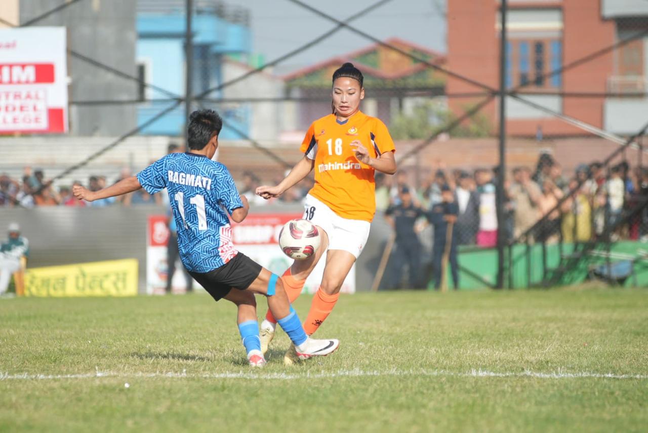 चितवन । विभागीय टोली एपिएफ फुटबल क्लबले चितवनमा जारी राष्ट्रिय महिला फुटबलमा फराकिलो जित निकालेको छ । प्रतियोगिता अन्तर्गत आज (सोमबार) सम्पन्न खेलमा एपिएफले बागमती युथ क्लबविरुद्ध ९-० को फराकिलो जित निकालेको हो ।